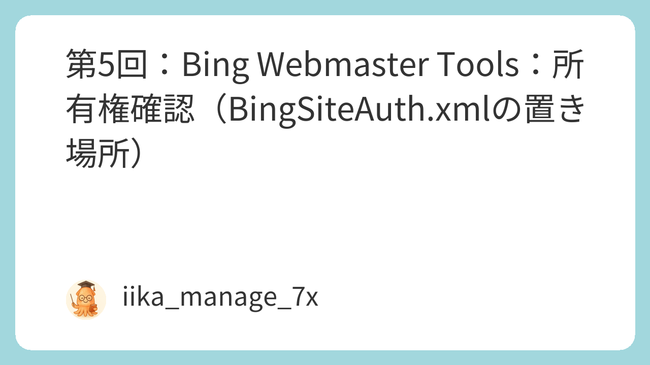 第5回:Bing Webmaster Tools:所有権確認(BingSiteAuth.xmlの置き場所)