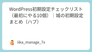 こんにちは。いーかです。できたところまででOK。今日は「ここまで進んだ」が成果です。この記事はなに?新しく立ち上げたWordPressサイト(=城)で、最初にやるべき設定を 迷わず進めるためのチェックリストです。このページを「玄関(ハブ)」...