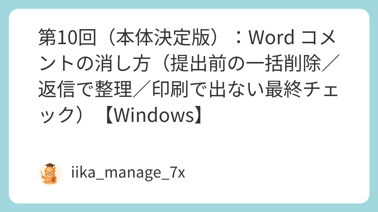 この記事は、WindowsのWordで「コメント」を事故なく扱うための決定版をまとめました。