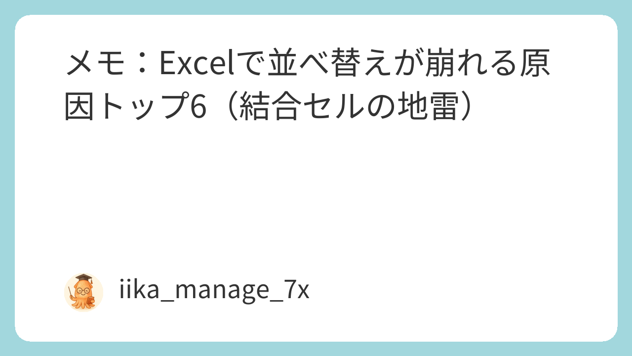 Excelで「並べ替えたら表が壊れた」「一部だけ動かない」を直すメモです。