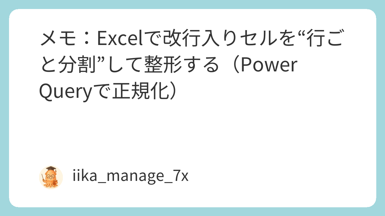 Excelで「1セルに複数行(改行)が入ってて扱いづらい」を、1行=1データに整えるメモです。