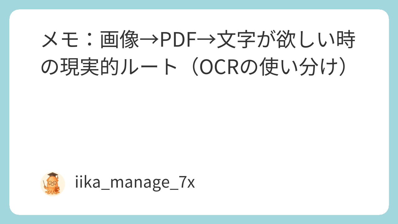 「画像しかないPDF(スキャン)」から、文字を取り出したいときの現実的ルートまとめです。