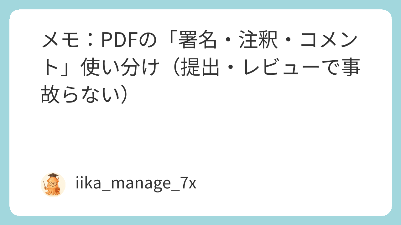 署名=承認/同意、注釈=赤ペン、コメント=会話。目的が違うので、混ぜると伝達事故が起きる。