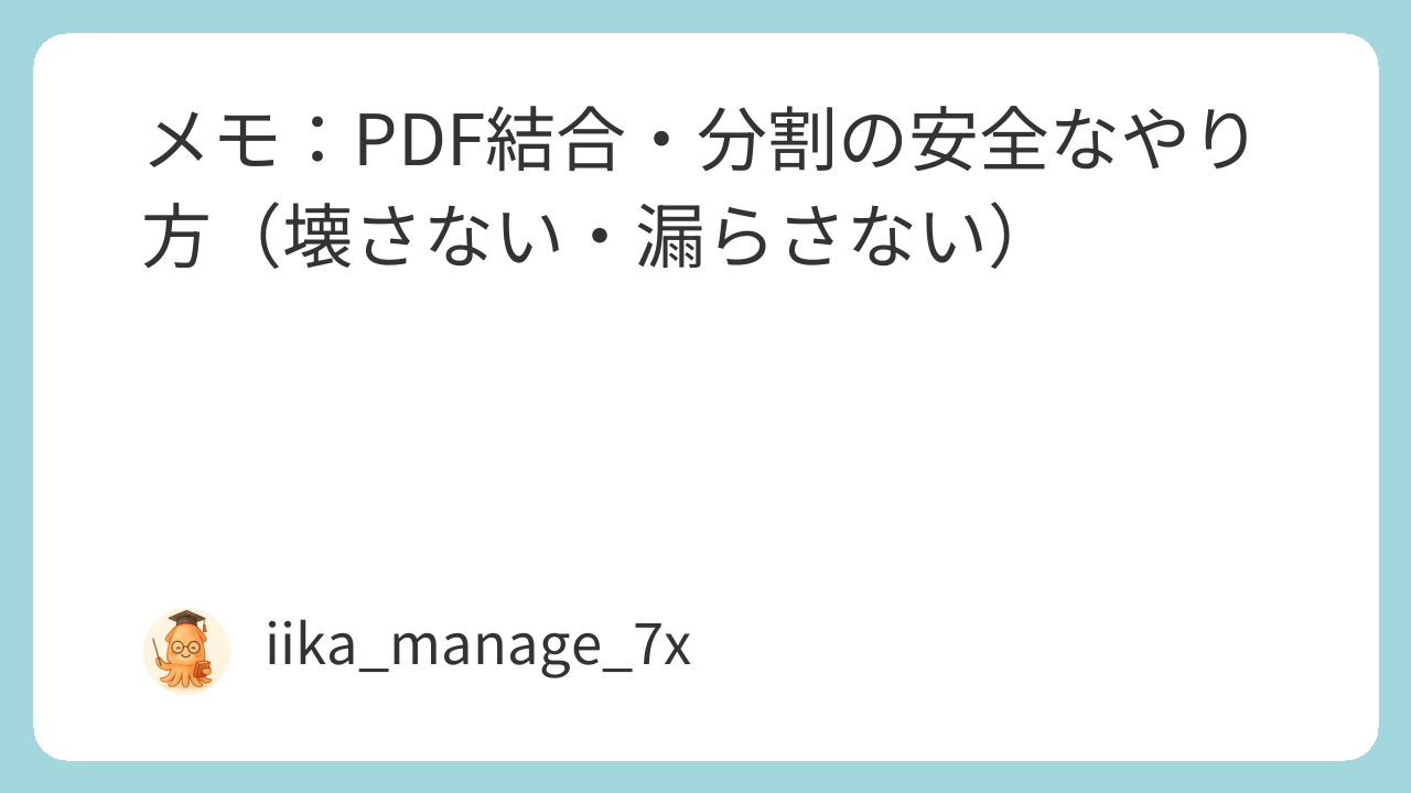 PDFの結合・分割で事故らないための“型”をまとめます。