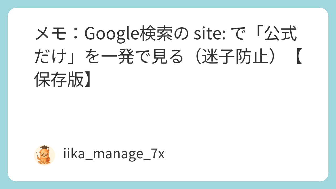 検索結果がブログだらけで迷子になるとき、site: が効きます。公式だけに絞れます。