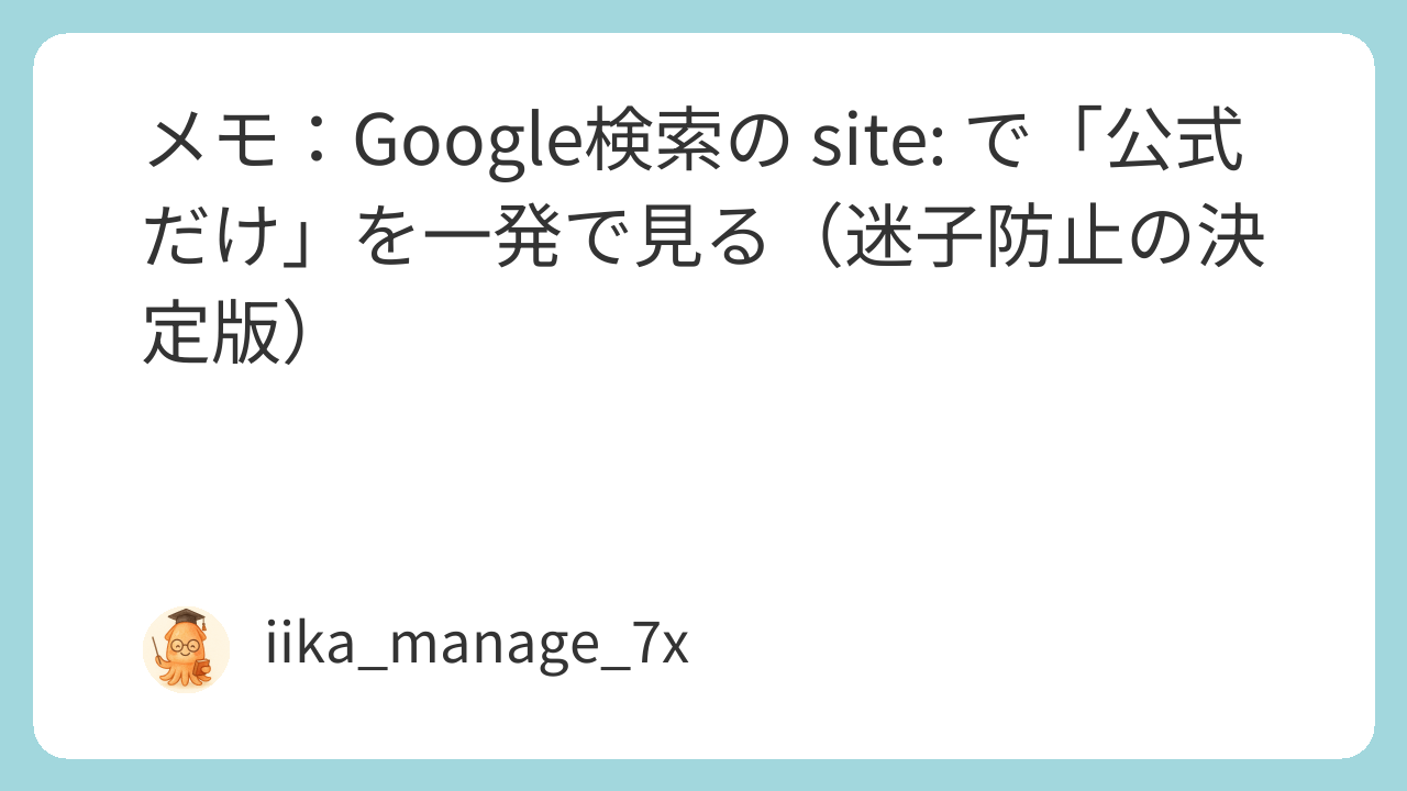 検索結果がブログ・まとめだらけで迷子になる時、site: を使うと“公式だけ”にできます。