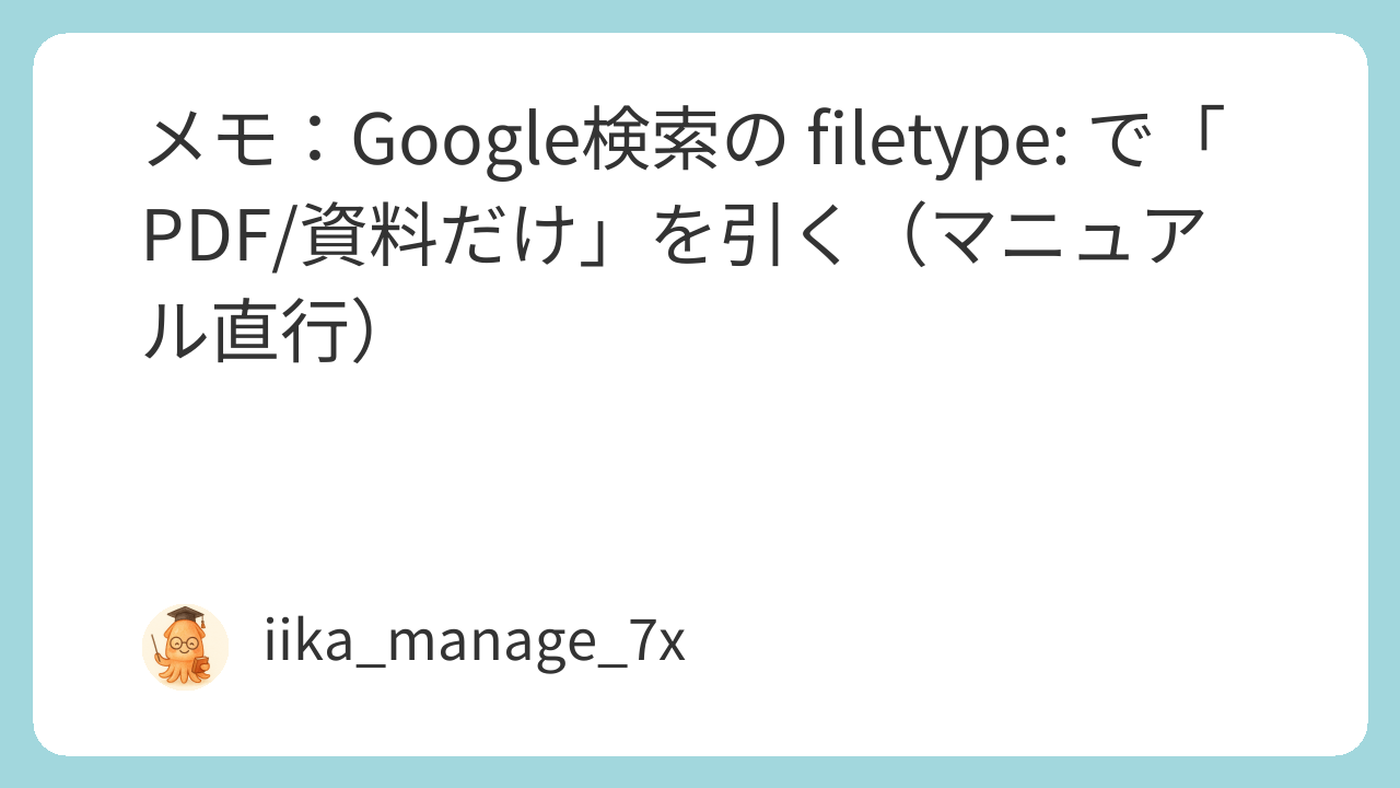 メモ:Google検索の filetype: で「PDF/資料だけ」を引く(マニュアル直行)