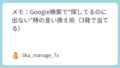 いまの悩みを「主語/症状/条件」に分けて、①の型で1回だけ検索してみる。 寺子屋いーか