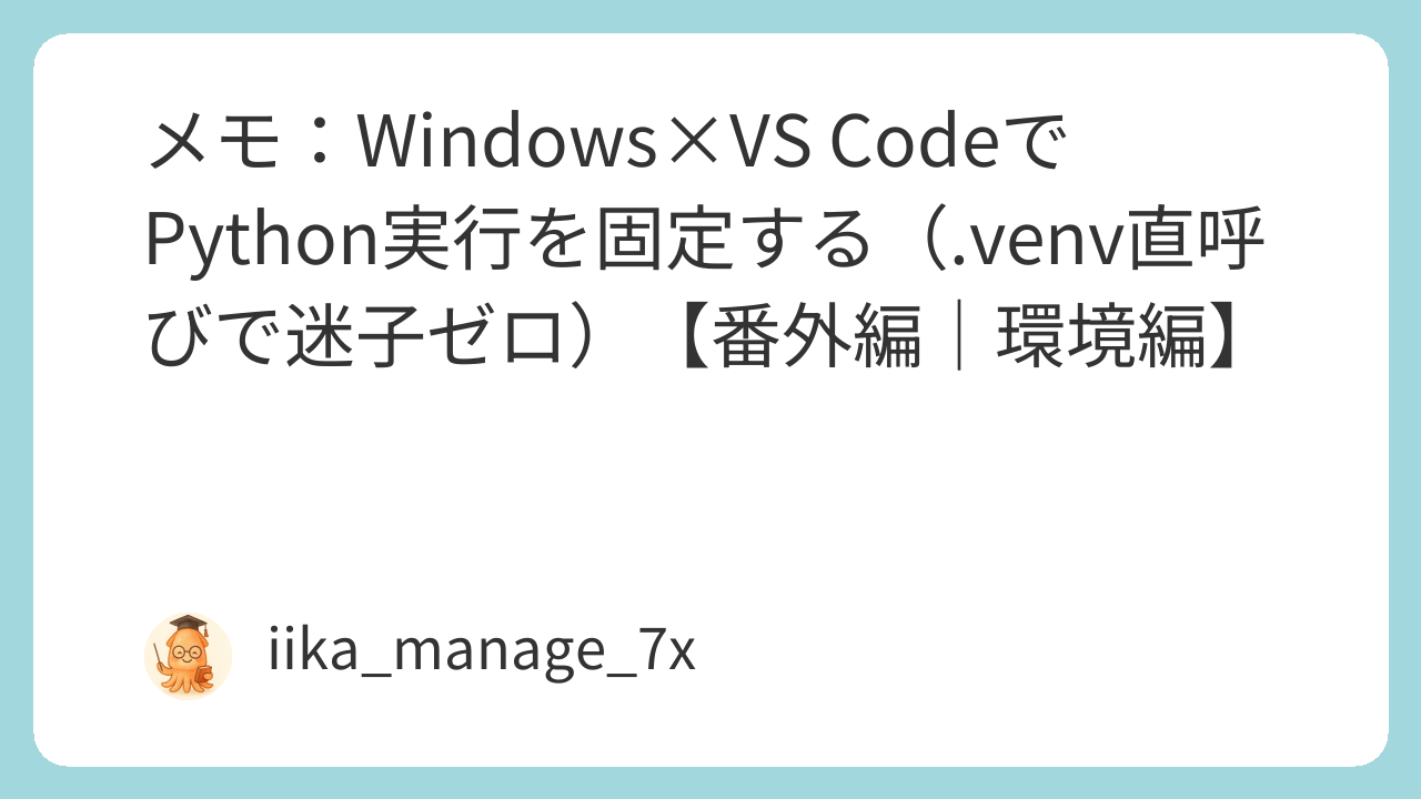 - Windows + VS Code + venv の基本運用(一般的な手順)