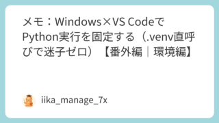 こんにちは。いーかです。できたところまででOK。今日は『ここまで進んだ』が成果です。この回は、分析より先に 「迷子の原因(別のPythonで動いてる問題)」を消す回です。30秒まとめ(ここだけ読めばOK)Pythonは1台のPCに 複数入っ...