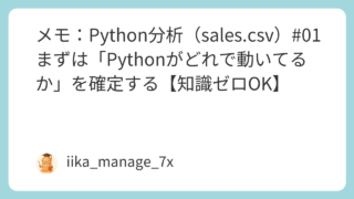 Python環境(Windows) メモ:Python分析(sales.csv)#01 まずは「Pythonがどれで動いてるか」を確定する【知識ゼロOK】
